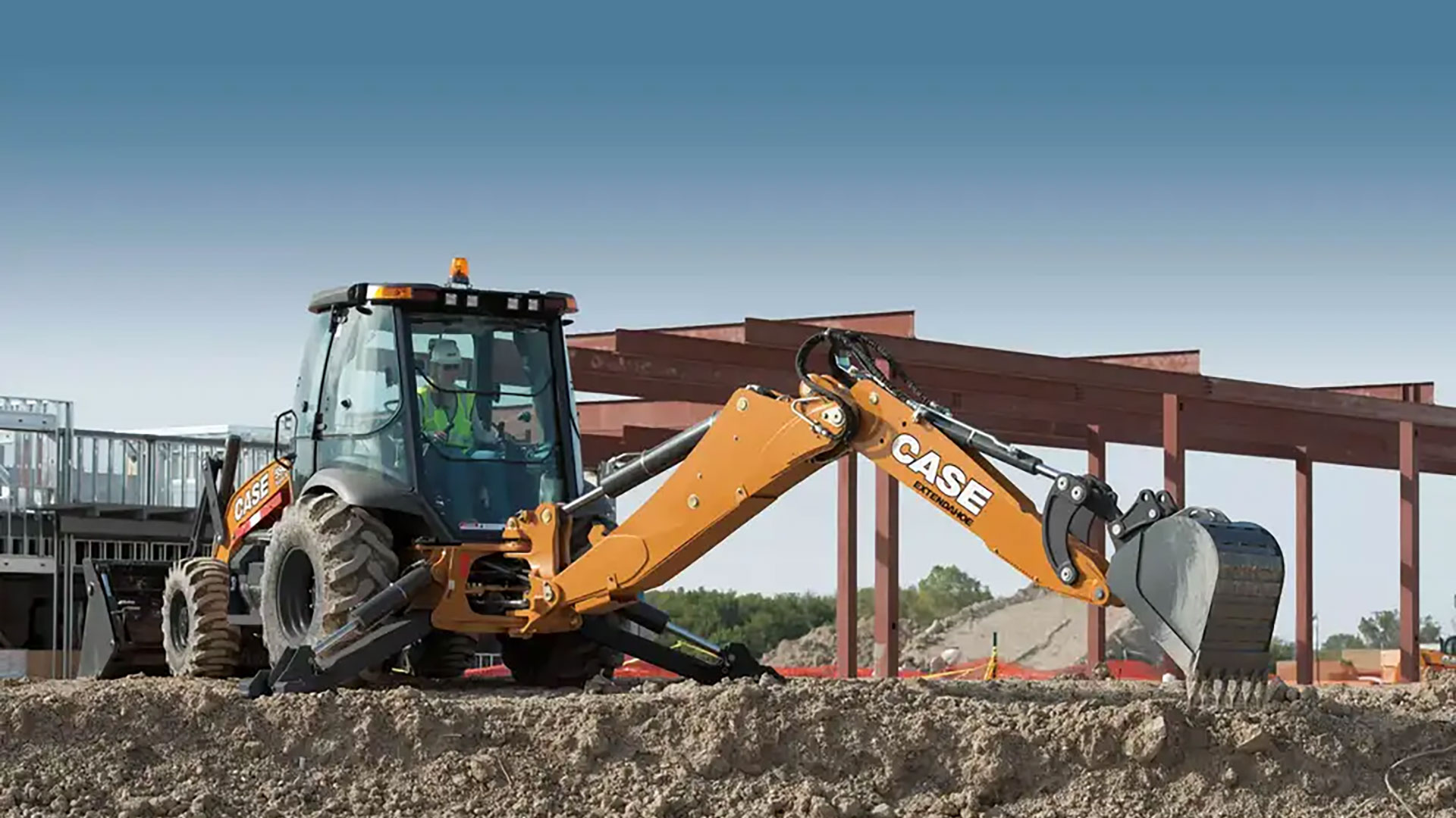 The CASE 580 Super N WT Construction King™ Backhoe Loader is the broadest-shouldered machine in our lineup. With a wider stance, it provides better flotation, lower ground pressure and enhanced stability. We mated that width with extra power, at 110 hp, backhoe bucket breakout forces over 15,000 lb., a full-height loader lifting capacity of 8,425 lb. and backhoe lifting capacity of 3,761 lb. (with PowerLift). It comes with standard features like smooth PowerDrive transmission, ECO Mode for fuel savings and PowerBoost to get nasty in the tough stuff. And with a spacious cab, you’ve got room to spread out and take on bigger jobs.
