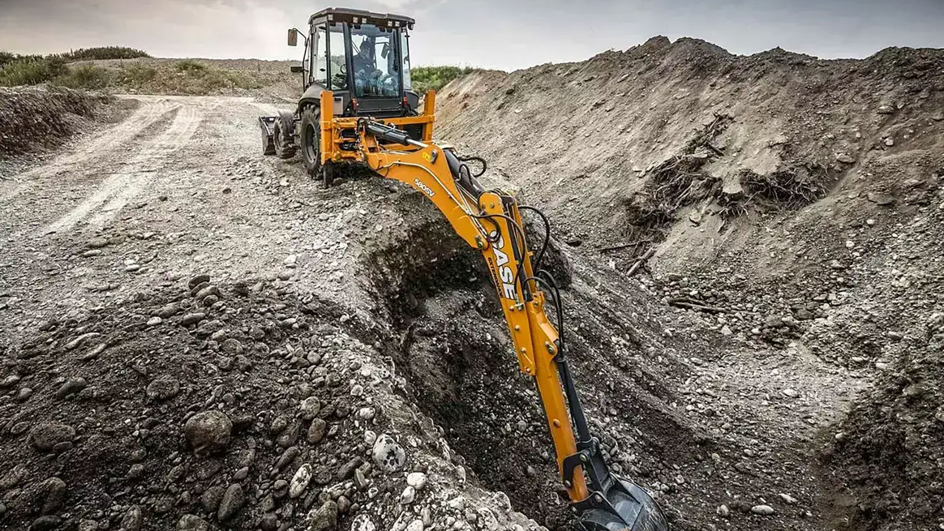This 580SV Construction King™ Side Shift Backhoe Loader takes legendary CASE backhoe capabilities and puts them smack dab into confined spaces and next to structures. That’s because this model features a hydraulic side shift boom and vertical outriggers that let the machine get busy when snugged up against a building or along a tight roadway. It also lets operators dig rectangular trenches without having to reposition. The boom is curved, offering an outstanding view down to the bucket. And with a strapping 97 hp engine, responsive transmission and tool carrier linkage, you’re staring at a backhoe that’s all business.