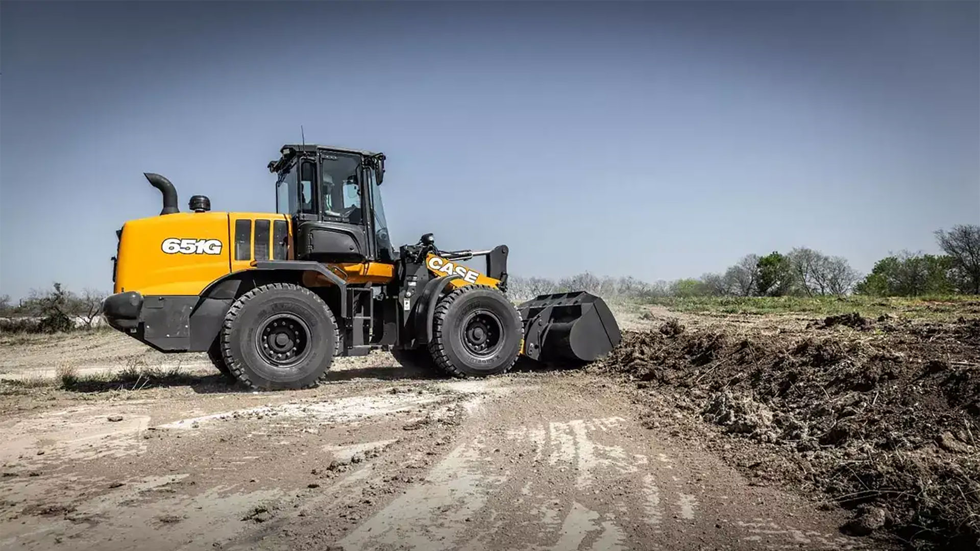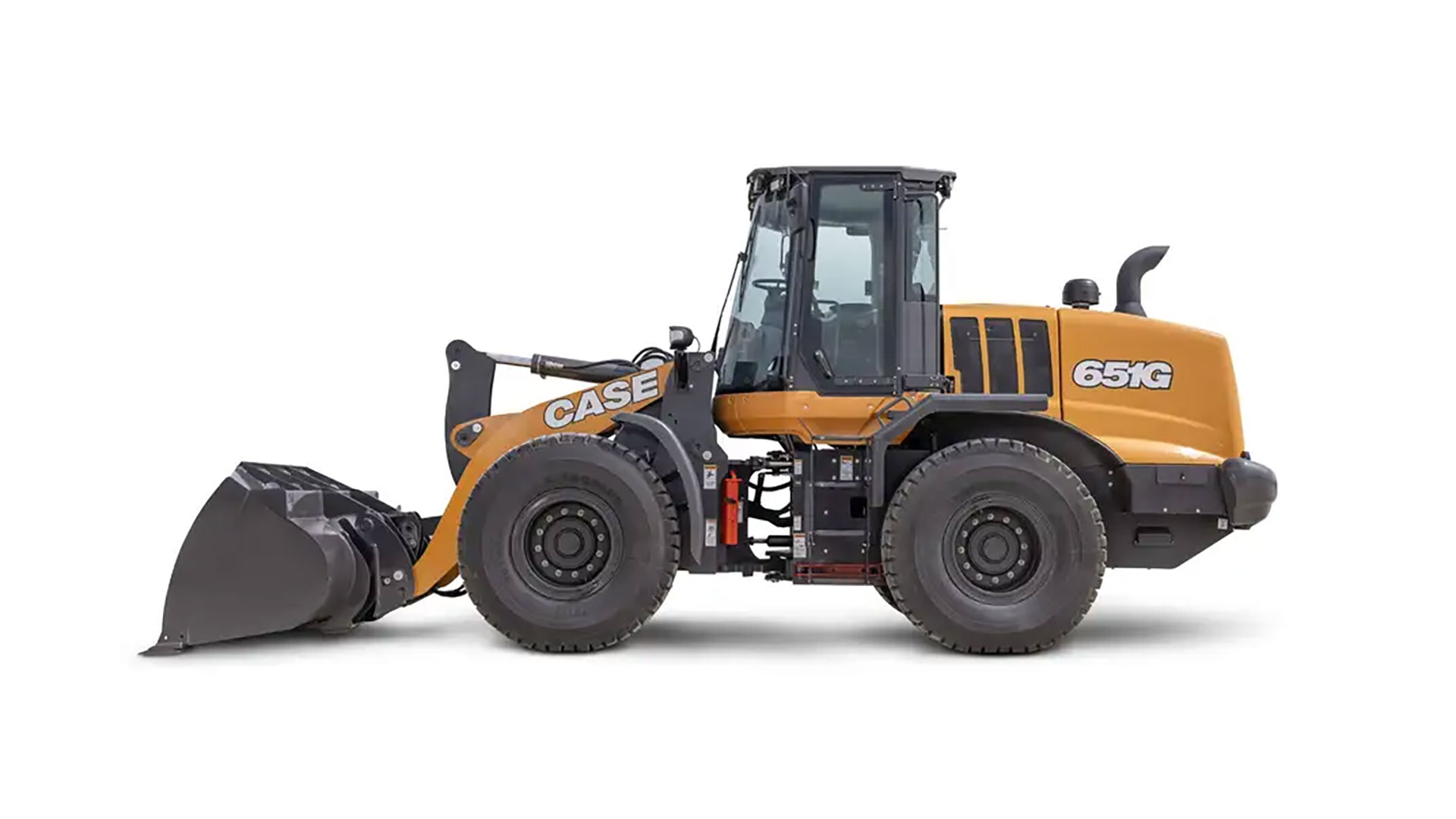 The fresh-faced machine here is the CASE 651G, the newest member of our large wheel loader family. This one has get-it-done written all over it. The operating weight has been bumped up, and it brings along increased lifting capacity. The hinge pin height has been raised 4 in. for more clearance loading trucks and TMR mixers. A larger pump capacity provides more flow for faster loader cycle times. The new curved bucket offers better material retention. And the cab is the envy of the industry, with an 8-in. LCD touchscreen, lots of room and adjustable suspension seat. Yep, productivity definitely runs in the family.