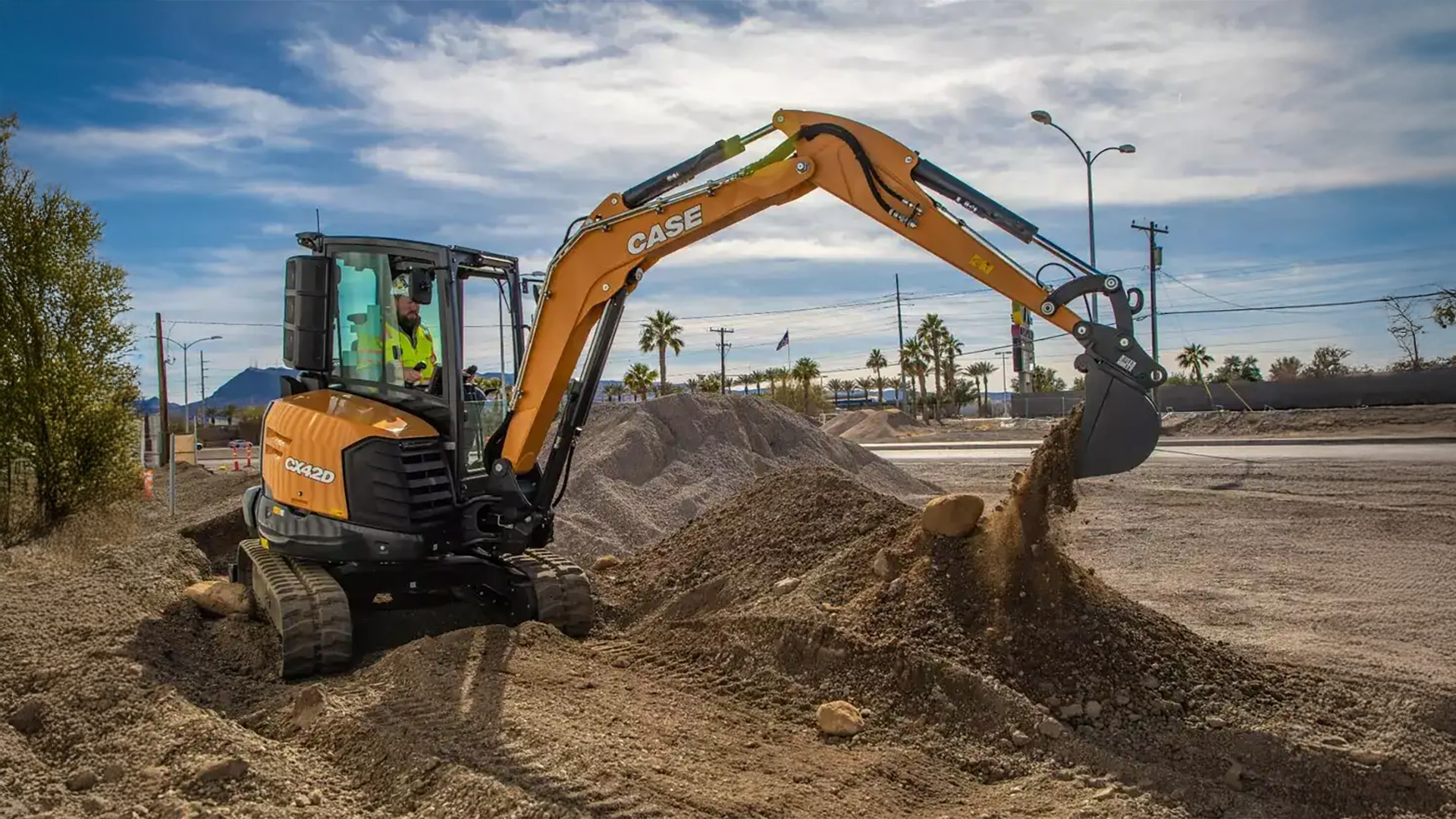 The CASE CX42D is the only zero tailswing mini excavator in its size class. That means more digging power when butted up against a wall, next to a structure or within cramped quarters. This one also pairs precision with muscle and maneuverability. Three power modes and proportional hydraulic controls allow you to dial in the machine as you like it. The standard two-way and optional six-way blade give the operator confidence whether backfilling a trench or approaching a challenging dig. And with its innovative hydraulics, you can utilize different attachments, turning this digger into an all-purpose beast.