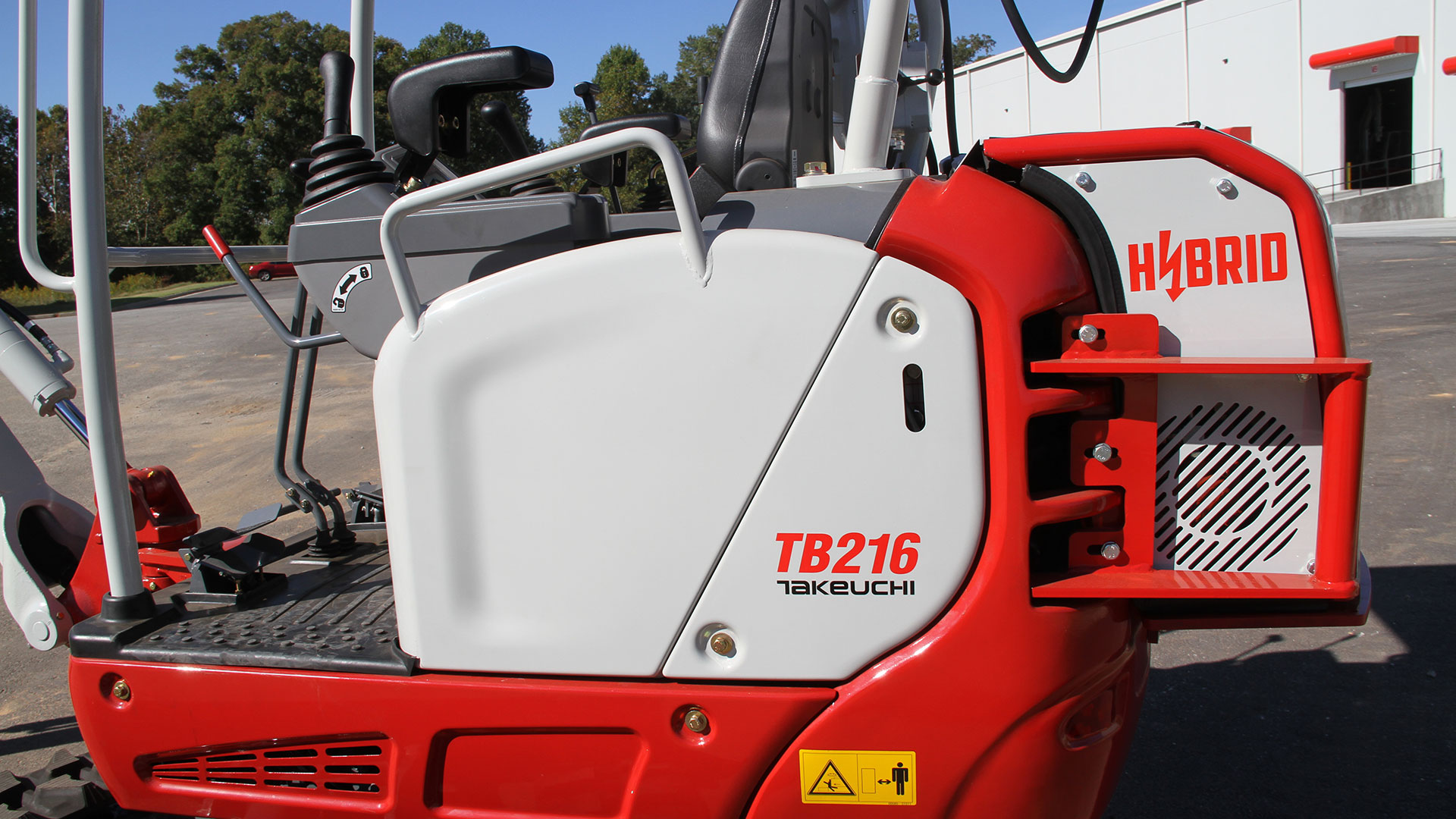 The compact size and dual power capabilities of the Takeuchi TB216H allows it to work in a wide range of applications that may have limited accessibility, noise and clean air requirements. It is ideal for plumbing, landscaping, utility installation, interior demolition, and rental applications. Performance is identical between the diesel engine and electric motor, and the controls are the same regardless of operating mode.