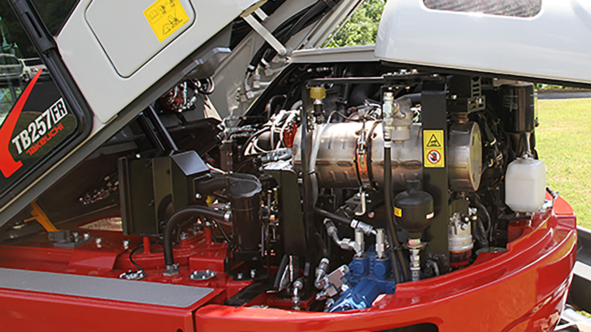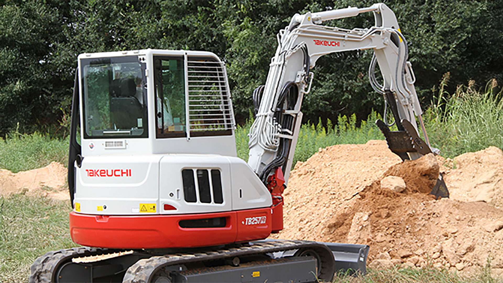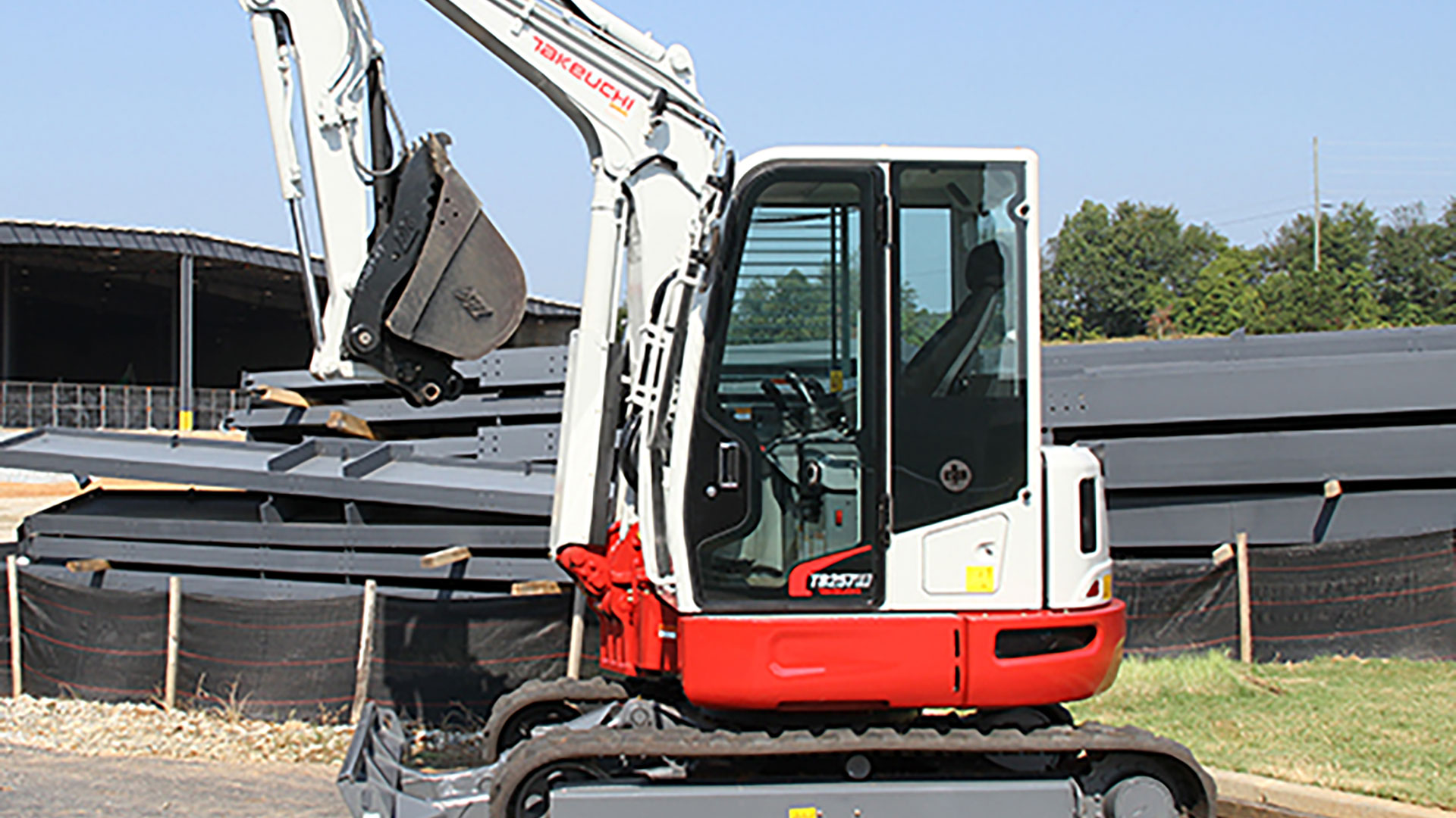 The newest excavator in the FR series, the TB257FR features a side-to-side (STS) offset boom coupled with the tight tail swing for unmatched visibility to the work equipment and enables it to rotate fully with very little overhang. With an operating weight of 12,930 lb, a bucket breakout force of 10,431 lb and multiple hydraulic auxiliary circuits makes the TB257FR an outstanding attachment platform and perfect for limited space job sites. Its low center of gravity and optimized counterweight placement creates an extremely stable platform with lifting capabilities similar to that of a conventional machine.
