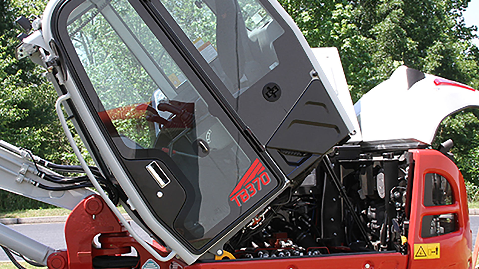 The TB370 is the first model of Takeuchi’s new generation line-up, which has been upgraded with state-of-the-art technology and a completely redesigned automotive styled interior with intuitive user operation. Features on the TB370 include 8” color touch screen, jog dial control, wraparound counterweight, multiple hydraulic lines, and large service hoods for easy maintenance. The TB370 offers a superior working range and excellent power that provides all-day productivity and performance.