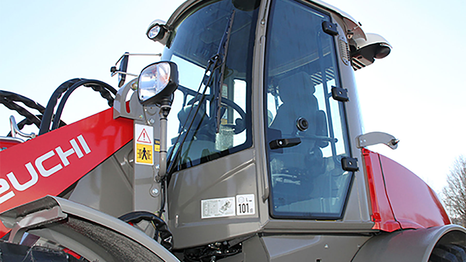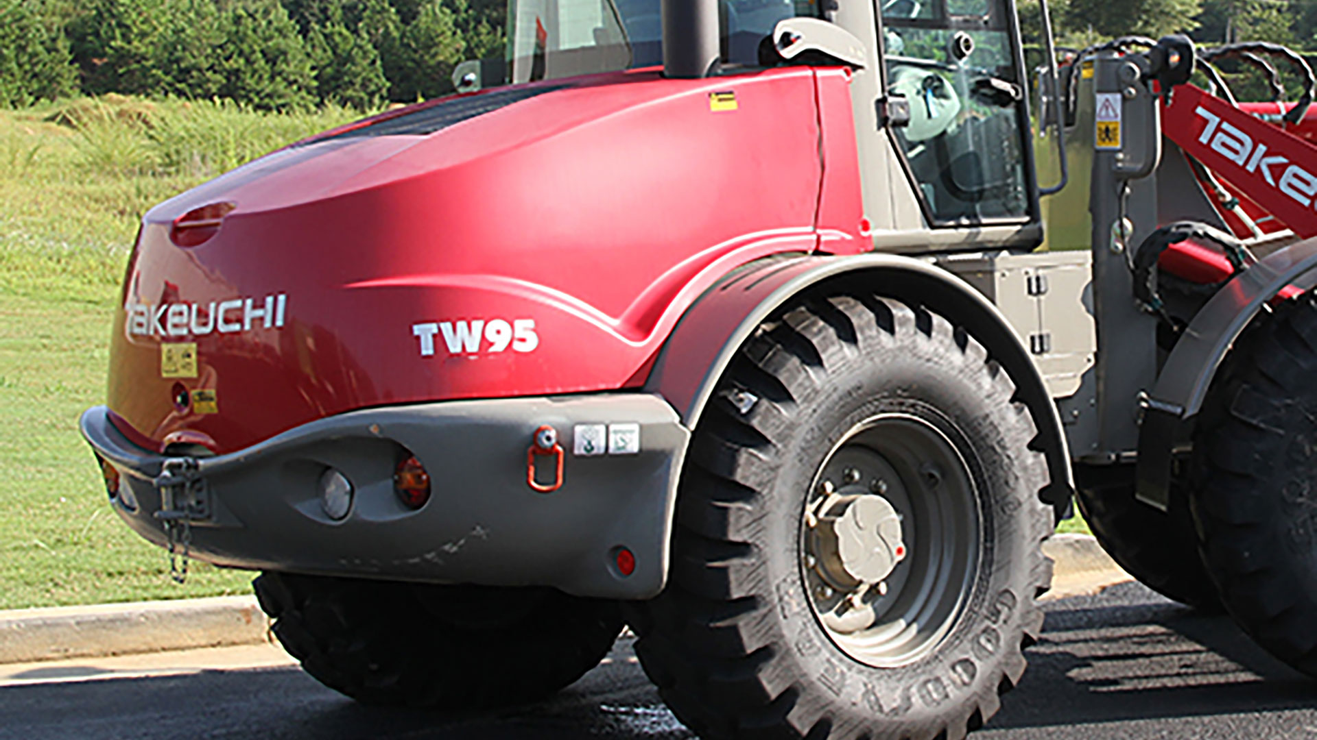 Powerful and efficient, the Takeuchi TW95 delivers exceptional performance, comfort, and serviceability. It is an ideal loader for a wide range of applications including load and carry, snow removal, and feedlots. The cabin is spacious and features a deluxe high-back air ride seat with heat and armrest, single lever joystick control for all loader functions and directional changes (F-N-R), a proportional thumb wheel for auxiliary hydraulic functions, and rocker switches to control a wide range of machine functions. A standard hydraulic quick coupler makes changing attachments quick and efficient.