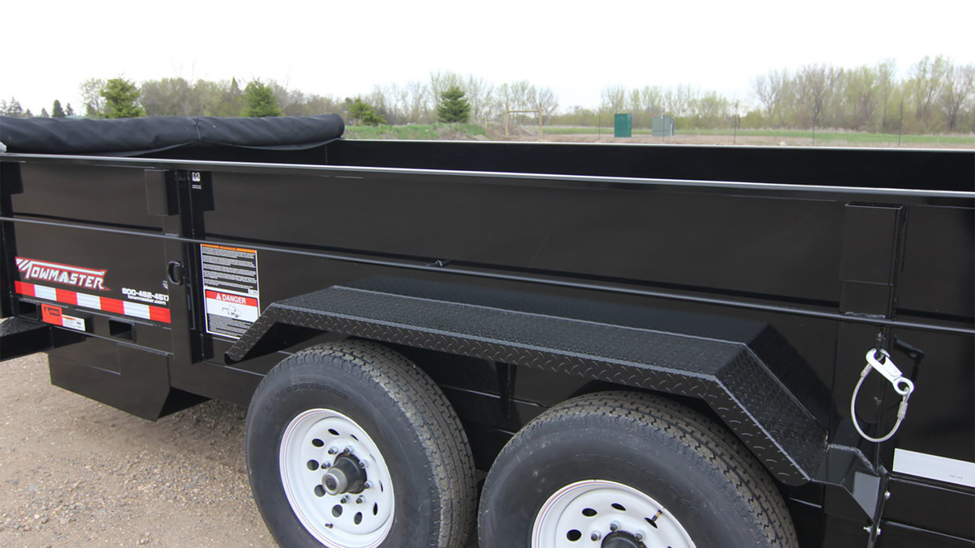 Towmaster® hydraulic dump trailers are popular with individuals or businesses involved in rental, construction, landscaping, agriculture, or waste management industries because of their versatility. They are used to transport and unload various materials such as soil, gravel, sand, and debris. The standard 6′ ramps with underbody storage also make loading and unloading equipment effortless. The power up/gravity down hydraulic scissor hoist allows for easy unloading of heavy materials, making it more efficient and convenient for users.