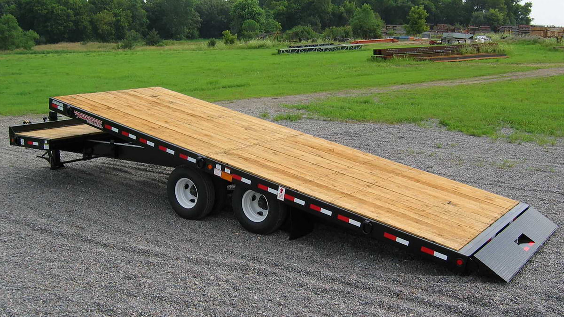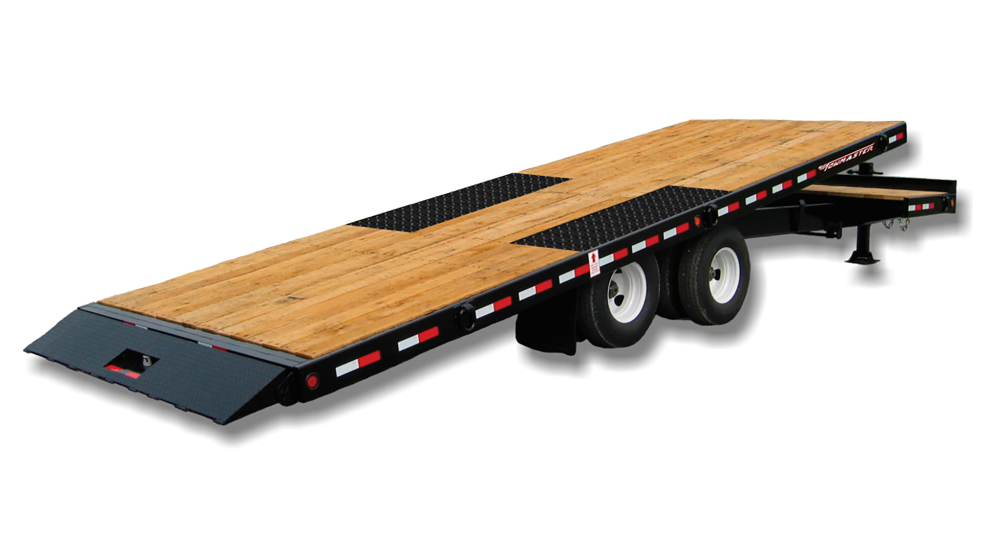 The Towmaster® deck-over tilt trailers offer convenience and durability. There are no ramps to hassle with, simply tilt the deck, drive on or off and level the deck back down. It features our patented automatic kick-out ramp that doubles as an under-ride protection bumper. The tilt deck trailer features a single-lever twin-latch system, stationary forward deck and adjustable hitch. A deck cushion cylinder eases the deck back into transport position and prevents equipment from slamming the deck down.