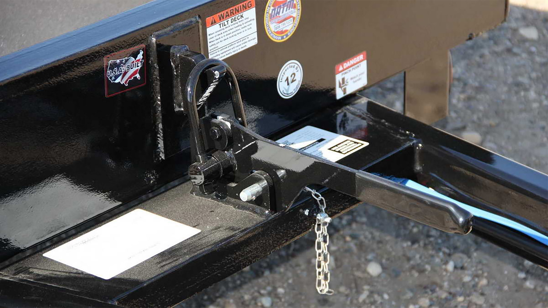 The T-3DT trailer is a pan type tilt deck and is designed for hauling small equipment and short loads of sand, rock or debris. The deck features a slip-resistant texture and 8-inch high sides. The low deck height is perfect for a low load angle and the slip-resistant deck assists in equipment loading. The T-3DT features a rubber-ride axle for a smooth ride, electric brakes, an adjustable hitch, and a positive locking (over-center) latch system to keep the deck secured to the frame.
