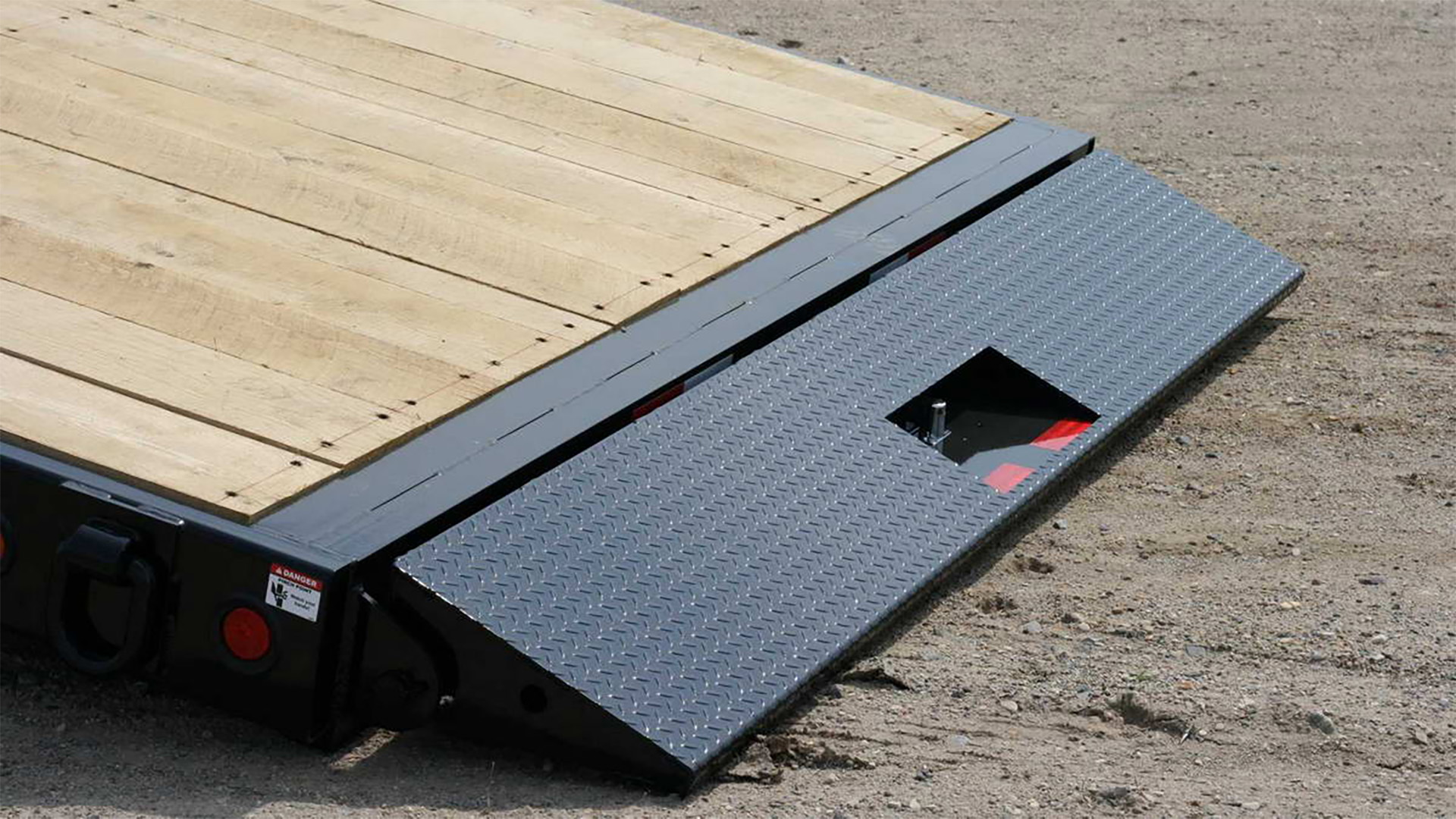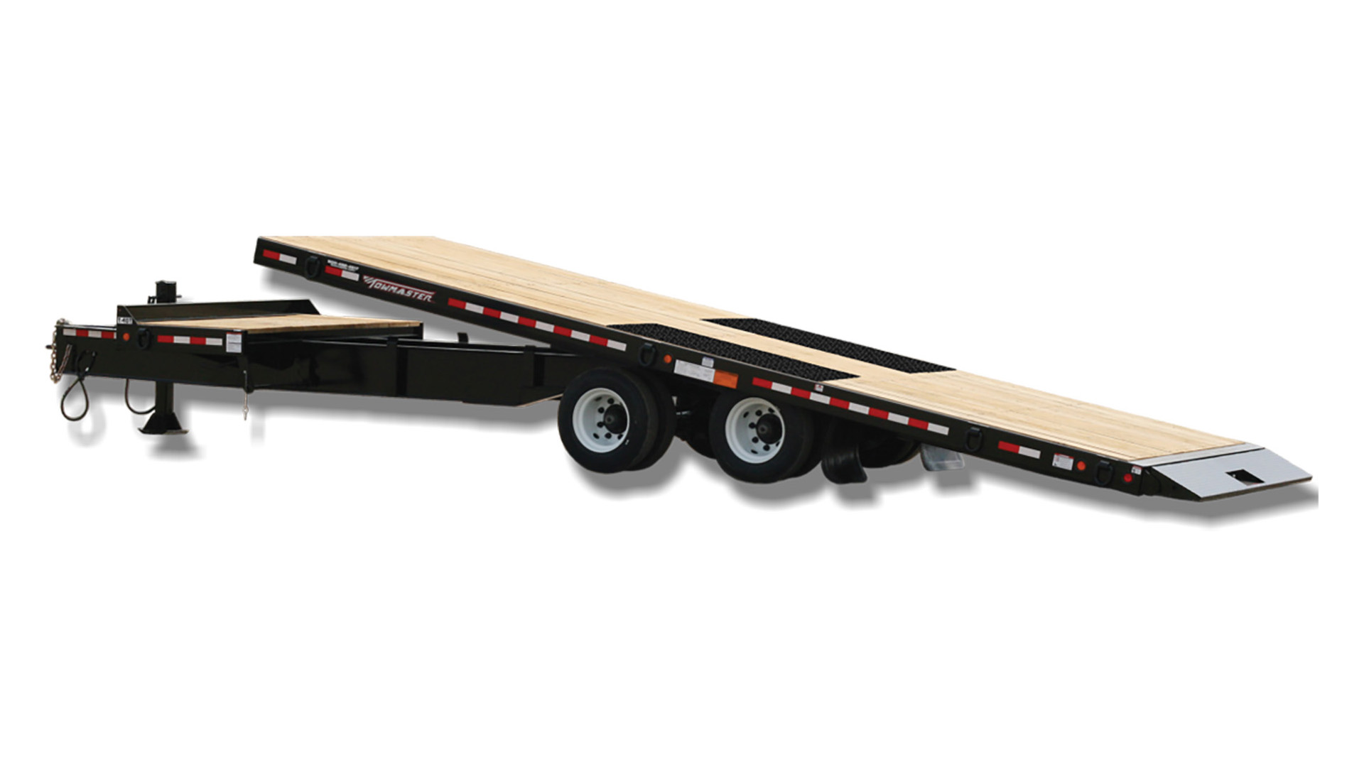 The Towmaster® deck-over tilt trailers offer convenience and durability. There are no ramps to hassle with, simply tilt the deck, drive on or off and level the deck back down. It features our patented automatic kick-out ramp that doubles as an under-ride protection bumper. The tilt deck trailer features a single-lever twin-latch system, stationary forward deck, Hutchens® suspension and adjustable hitch. A deck cushion cylinder eases the deck back into transport position and prevents equipment from slamming the deck down.
