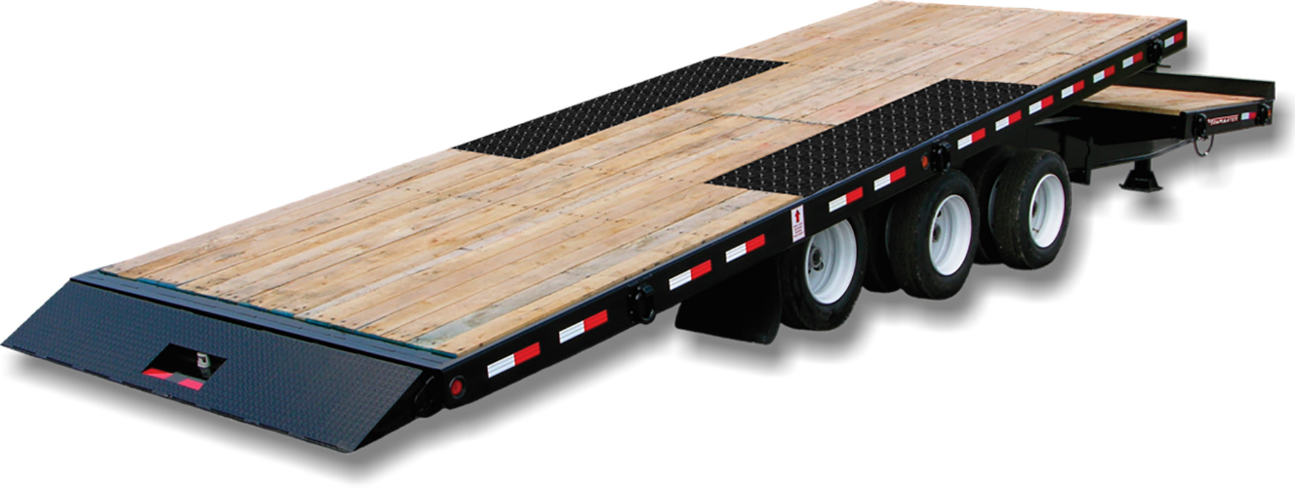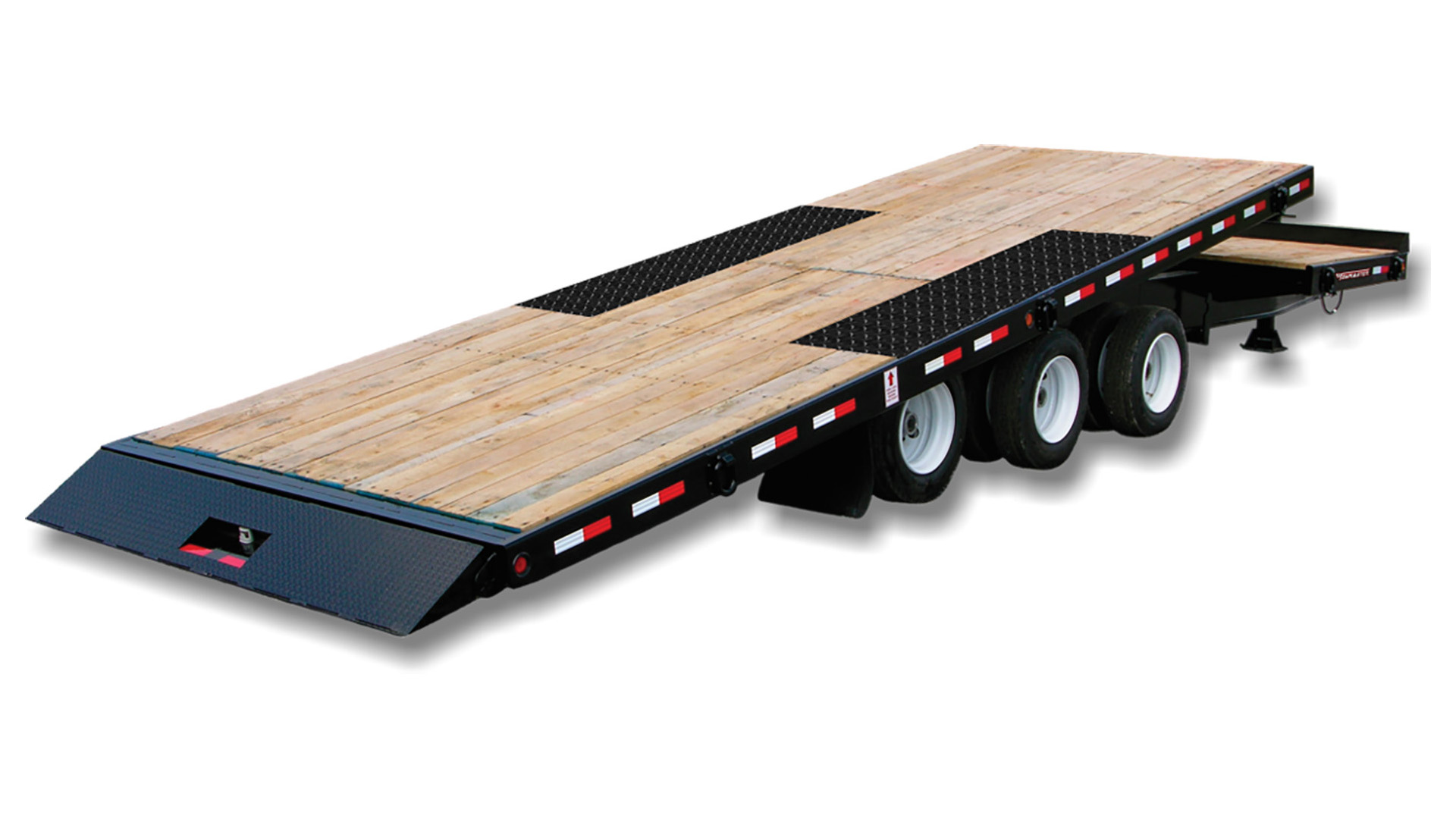 The Towmaster® deck-over tilt trailers offer convenience and durability. There are no ramps to hassle with, simply tilt the deck, drive on or off and level the deck back down. It features our patented automatic kick-out ramp that doubles as an under-ride protection bumper. The tilt deck trailer features a single-lever twin-latch system, stationary forward deck, Hutchens® suspension and adjustable hitch. A deck cushion cylinder eases the deck back into transport position and prevents equipment from slamming the deck down.