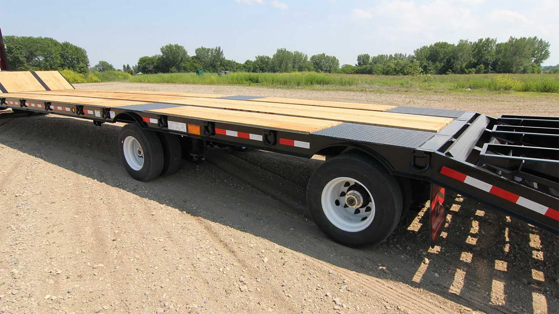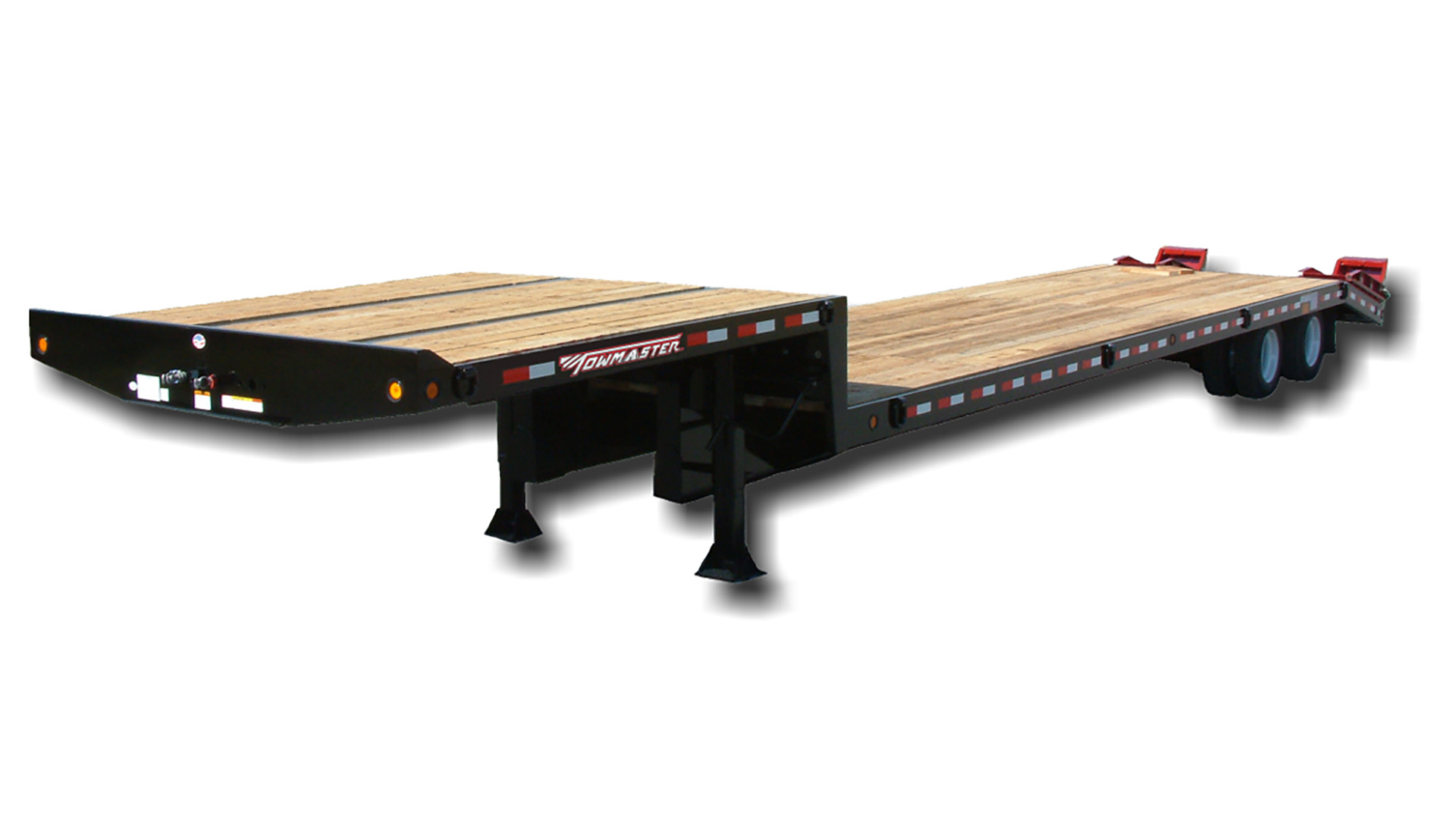 The Towmaster® T-70RG Rigid Gooseneck trailers are ready to haul your heavy equipment behind your fifth-wheel tractor. They feature dual axles, two-way spring-assist ramps, Hutchens suspension and sealed wiring. A 10-foot top deck can haul a skid-loader or other smaller equipment (optional loading ramps required). A triple axle is available on the T-70RG. Some optional equipment may be shown in photos.