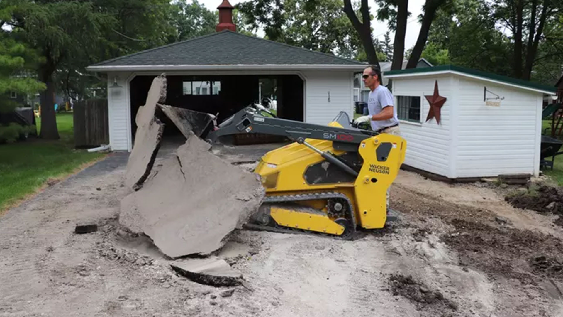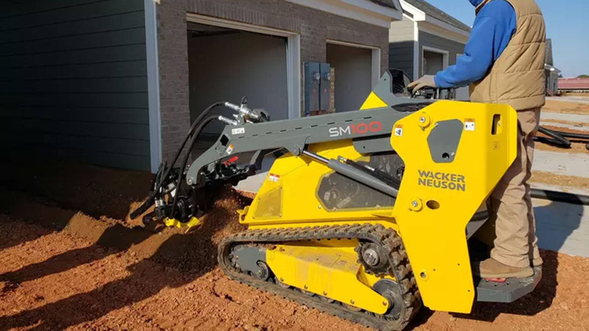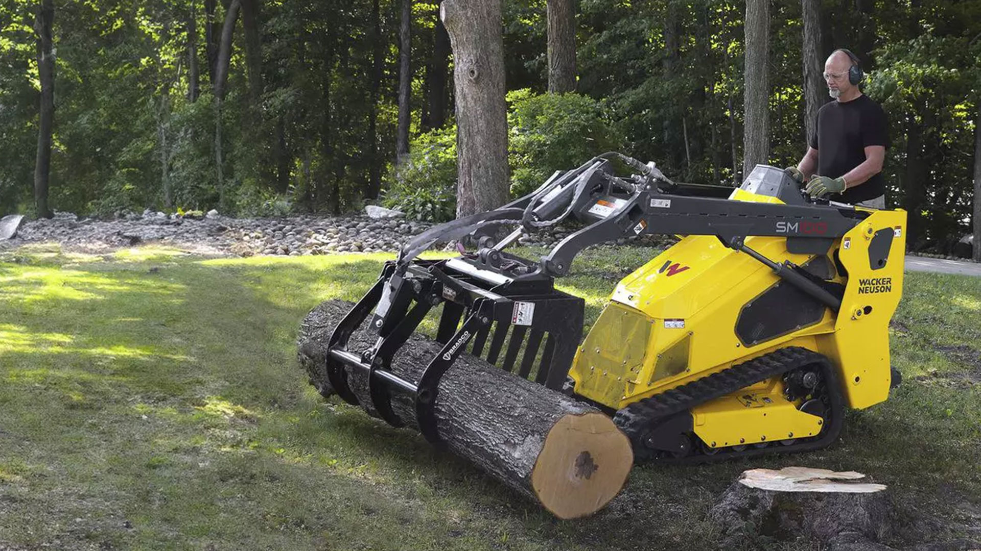 The SM100 is a versatile, stand-on utility track loader which offers a compact design, allowing easy access to doorways, gates, and other tight spaces. The strong lift capacity and high hinge pin height of the SM100 allows for easy loading into high sided trucks and dumpsters. With the use of a variety of attachments, the track loader is a multi-tool expanding the number of application possibilities.