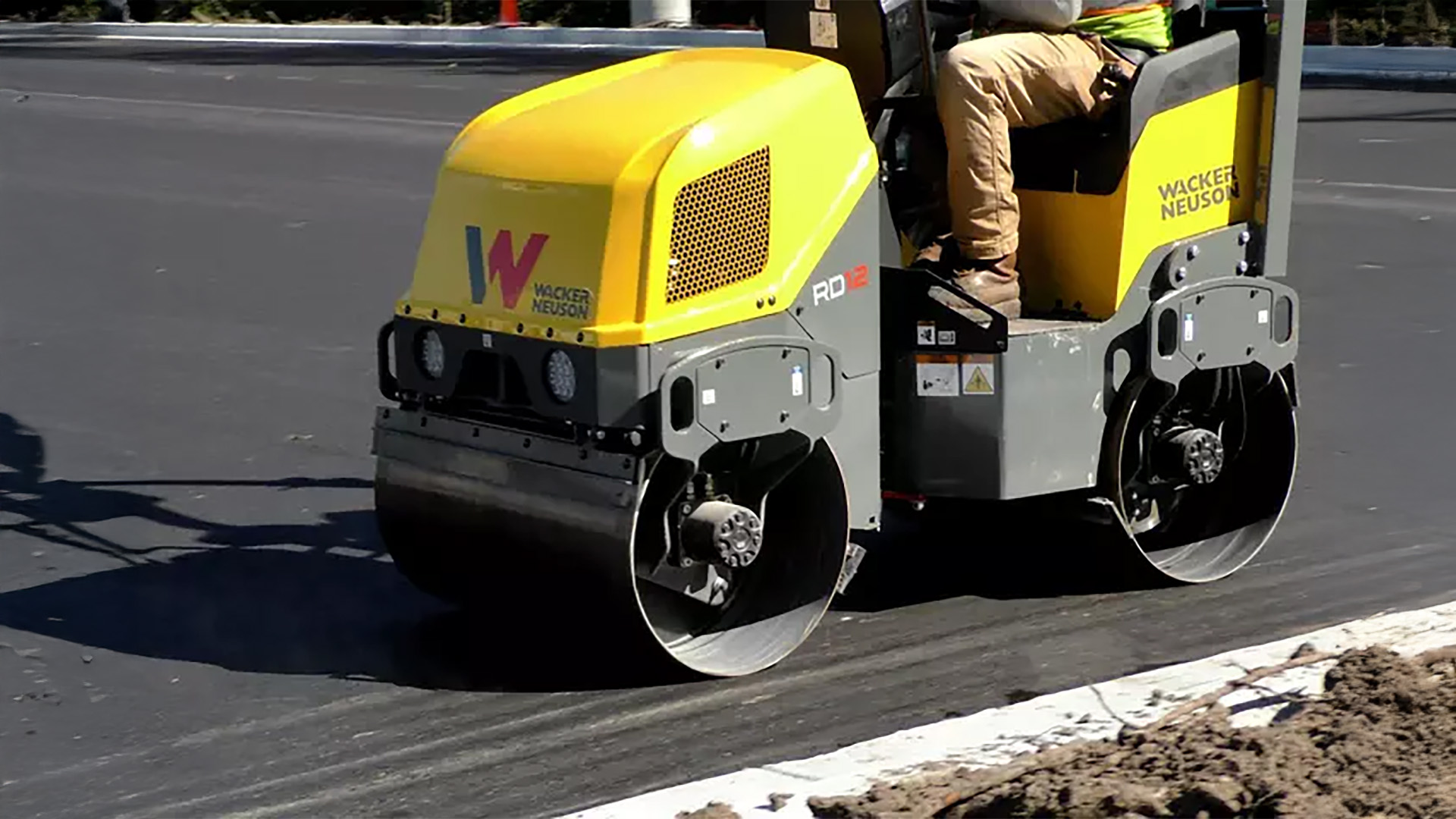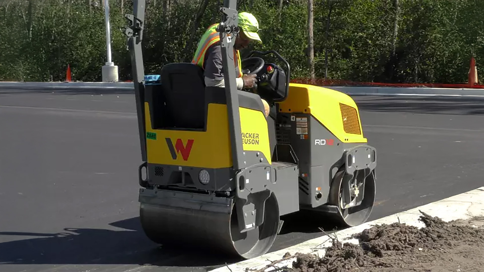 The RD12 tandem vibratory roller with a dual drum drive and articulated steering for excellent maneuverability. With a front vibrating drum and rear static drum it offers efficiency compaction results in a compact package. This machine is ideally suited for commercial and residential compaction of asphalt and granular subbase material. Primary applications include parking lots, driveways, secondary roads, repair work and nature trails. Additionally, the RD12 is utilized for turf rolling in the landscape and golf industry segments.